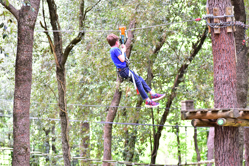 De laatste dag alweer, het zou wat koeler worden dus wilden we iets gaan doen. Aan de de kids een klim parcours voorgelegd en dat zagen ze wel zitten. Ik nog nooit gedaan maar moet lukken denk ik, als het maar niet teveel lenigheid vereist, want ik ben niet lenig! Gelukkig valt het wel mee weet ik nu ;-). Ik ga samen met de kids en Alice maakt de fotos. Florian mag 4 parcoursen en Rosalie 1 extra, ik dus ook ;-). Het begint met uitleg van de haken/carabenier dingetjes, het komt er op neer dat je steeds met minimaal 1 vast zit en er maar 1 tegelijk open kan. Dan nog hoe je je vast maakt om een ladder op te gaan en hoe je je vast maakt om via de ziprol te ‘glijden’. Na eventjes krijg je er steeds meer handigheid in. Het eerste parcours is vrij dicht bij de grond maar je gaat steeds hoger. De kids gaan erg snel, ik vooral onhandig en voorzichtig ;-). Het leukst zijn de ziplines, zeker de hoge en wat me is opgevallen dat je als je vast zit heel veel durft! En je eigenlijk bijna niet valt, tuurlijk je zit vast en dat helpt bij het evenwicht maar niet een keer hingen we in de veiligheidsriemen. Ik was wel blij dat ik er maar 5 hoefde, pfff best vermoeiend en mijn handen zaten onder de klemblaren. Rosalie en Florian vonden het prachtig! Vooral leuk om samen bezig te zijn.